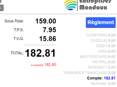 lorsque vous cliquez le bouton REGLEMENT vous verrez le montant du dépôt