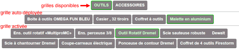 Pour ajouter un commentaire, vous pouvez simplement écrire le commentaire dans la description sans mettre de code de produit. Vous pouvez encoder des commentaires dans les fiches de produits avec un code si vous désirez avoir une banque de commentaires. Un commentaire direct aura la mention COMMENTAIRE dans la colonne du code de produit pour permettre la saisie et correction du commentaire (ce code ne sera pas sauvegardé). ![]() Comme la facturation de comptoir, le point de vente utilise une ligne de travail, (en jaune) sur laquelle l'entrée de donnée est faite. Une fois complétée la ligne va rejoindre les articles facturés à moins que l'avance automatique au prochain item (mode point de vente) dans profil soit activé. ![]() Sur confirmation de la ligne (mode Point de vente ou non) la ligne complétée se retrouve dans les lignes de détails. Pour modifier un item dans les lignes de détails, cliquer sur le code de produit et cet item se retrouvera dans la ligne de travail. Suite à sa confirmation, il reprend sa place dans les lignes de détails. Si l'avance automatique au prochain item (mode point de vente) n'est pas activé, et que vous avez activé l'option Info-Stock direct dans votre profil, lorsque vous entrez un code de produit, une section d'infos pour l'item en cours apparait. Dans cette section on retrouve les produits reliés qui proviennent de la section ACCESSOIRES de l'onglet CATALOGUE dans la fiche de produit. On peut ajouter ces items à la facture avec le bouton (indiqué par la flèche rouge) Parmi les options disponibles, des grilles de vente peuvent être configurées dans les paramètres administratifs (Point de Vente), pour vous permettre d'inscrire rapidement des items. Les grilles de vente sont souvent employées par les utilisateurs d'écrans tactiles. Une des grilles peut être auto-activée dans la configuration. ![]() Le bouton d'une grille manuellement activée sera verte. Lorsqu'un produit de la grille active est présent dans la facture, le bouton de l'item sera vert. ![]() Si l'item facturé est un ensemble (un kit), l'item est ses composantes seront de couleur BLEU pour les distinguer des items réguliers. ![]() Le bouton permet d'effacer une ligne