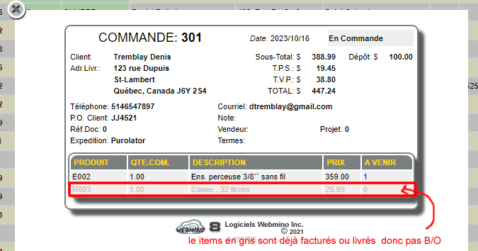 - pour une COMMANDE les items qui ne sont pas facturés ou en attente (B/O) seront importés.