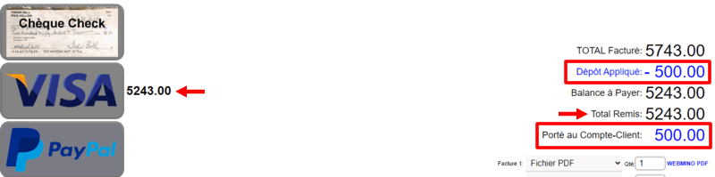 Si un dépôt existe, il sera visible et appliqué automatiquement à la page de règlement.