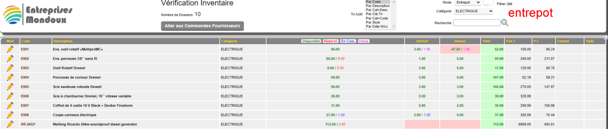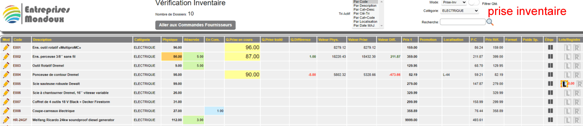 Dans tous les cas, vous pouvez choisir les items selon leur catégorie, ou un mot clé dans le code ou la description et une option de filtrer la qté. élimine les items sans quantité.