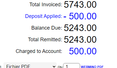 you will see the change and a note indicating the deposit applied,