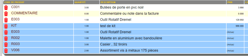 Upon confirmation of the line (in point of sale mode or not), the completed line appears in the details lines. To modify an item in the details lines, click on the product code, and that item will appear in the work line. After confirmation, it returns to its place in the details lines.