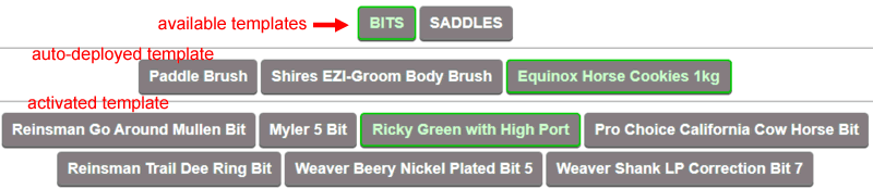 The button for a manually activated grid will be green. When a product from the active grid is present in the invoice, the item's button will be green.