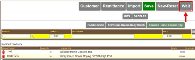 To put an invoice, order, or quote on hold, simply click the button.