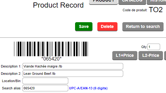 | If the ENABLE UPC-EAN DETECTION option in the administrative settings - operational behavior - inventory section is enabled, you will see the text in blue on the product record. |  |